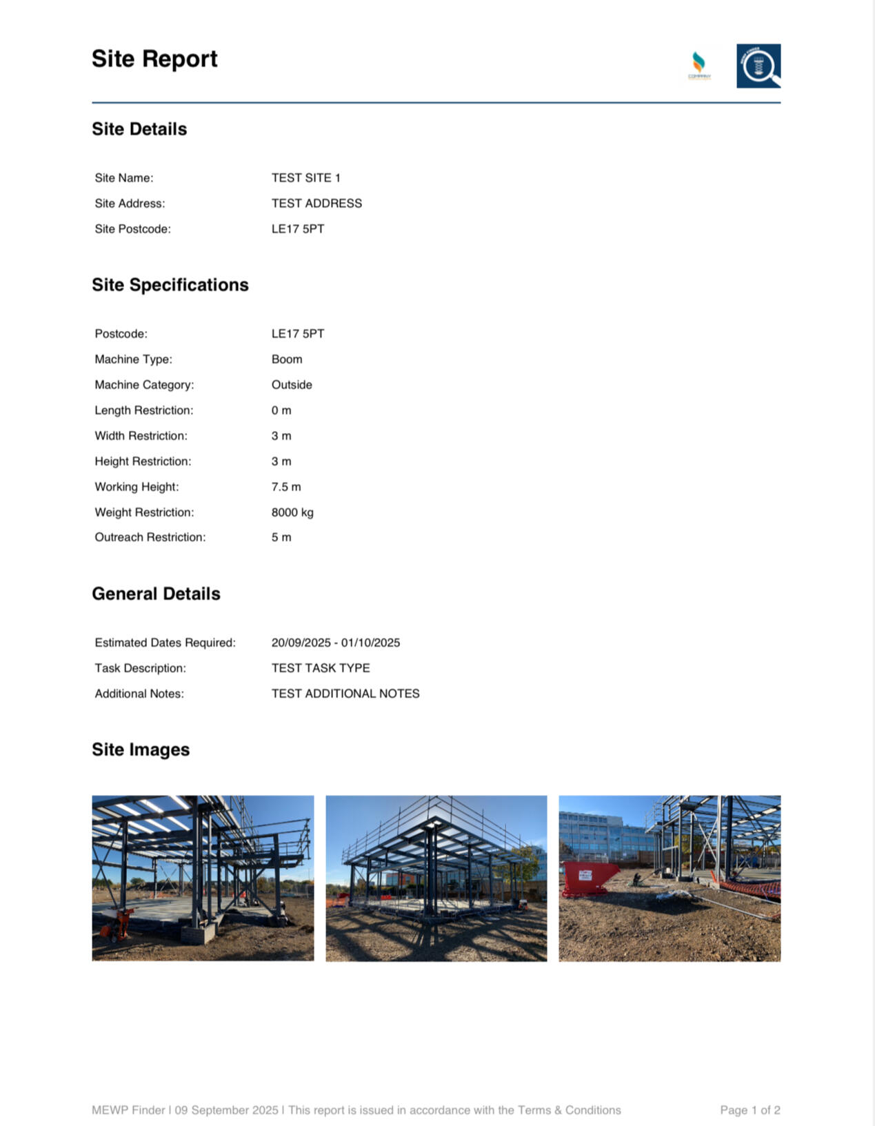 Your team’s time is valuable. MEWP Finder creates standardised, branded site survey reports in minutes. Less admin, faster quotes, and more projects won.